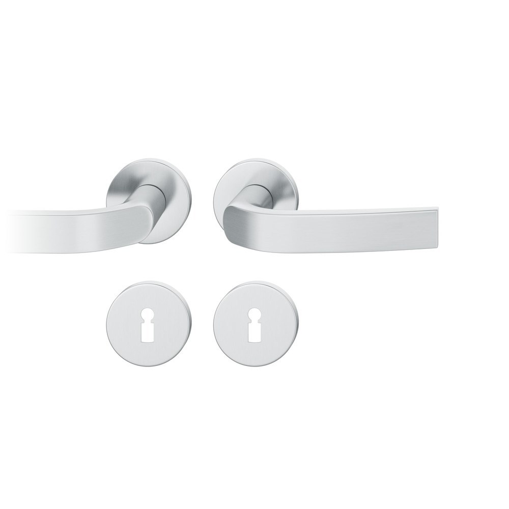 Produktinformationen "FSB Drückergarnitur 72 1271, Rosette, rund, Buntbart gelocht, Vierkant 8mm, DIN Rechts, Türstärke 39 - 48mm, mit Stütznocken, edelstahl fein matt Ausgleichslager® 3"