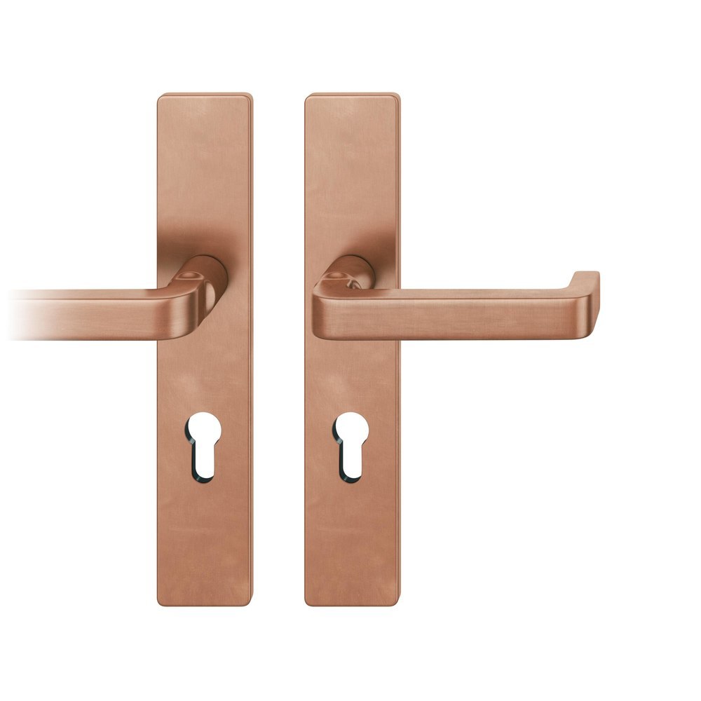 Produktinformationen "FSB für Feuerschutz Drückergarnitur 79 1134, Langschild, eckig, Profilzylinder gelocht, Entfernung 72mm, Vierkant 9mm, DIN Rechts, Türstärke 39 - 48mm, mit Stütznocken, hellbronze patiniert gewachst, Ausgleichslager® 3"