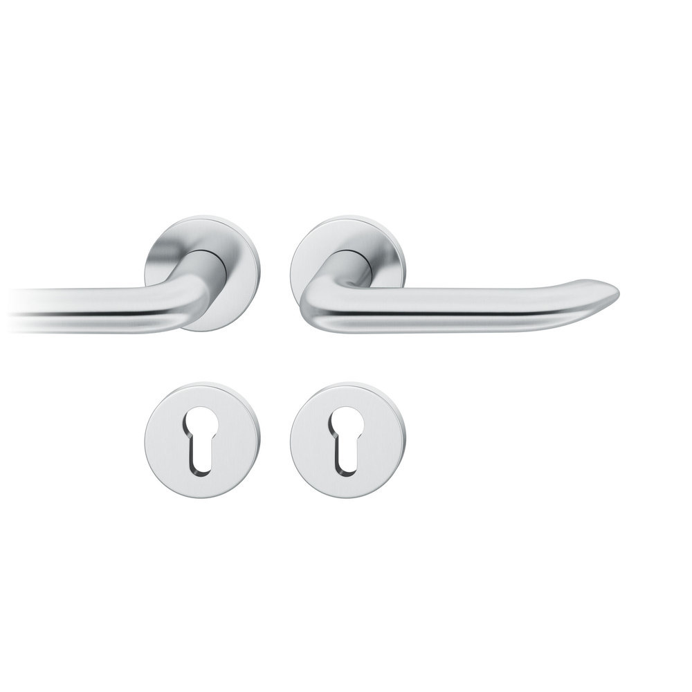 Produktinformationen "FSB FH Drückergarnitur 76 1293, Rosette, rund, Profilzylinder gelocht, Vierkant 9mm, DIN Rechts, Türstärke 39 - 48mm mit Stütznocken, edelstahl fein matt"