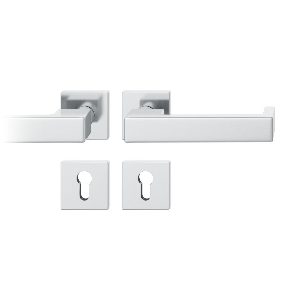 Produktinformationen "FSB für Feuerschutz Drückergarnitur 79 1074, Rosette, eckig, Profilzylinder gelocht, Vierkant 9mm, DIN Rechts, Türstärke 39 - 48mm, mit Stütznocken, edelstahl fein matt Ausgleichslager® 3"