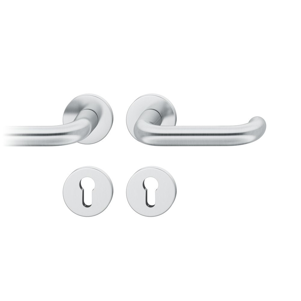 FSB für Feuerschutz Drückergarnitur 79 1146, Rosette, rund, Profilzylinder gelocht, Vierkant 8,5mm, DIN Rechts, Türstärke 39 - 48mm, mit Stütznocken, edelstahl fein matt Ausgleichslager® 3