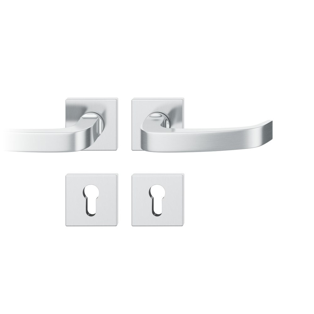 FS-AGL3-Drückergarnitur links 9mm PZ quadratische Rosette EN 179. max. 35°. TS 39-48mm Edelstahl fein matt