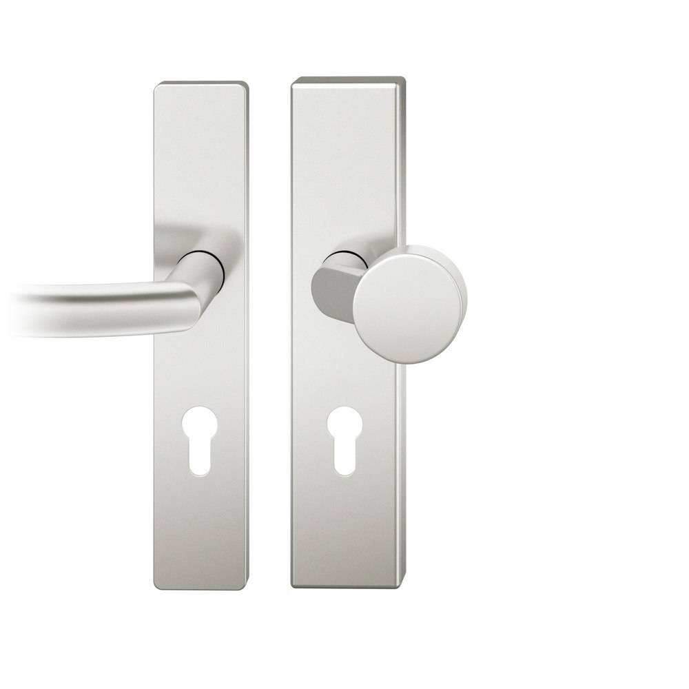 Produktinformationen "FSB für Feuerschutz Vollblatt Sicherheits-Wechselgarnitur 73 7579,Langschild,ES 1,ohne Zylinderabdeckung 92/9,DIN Links-Rechts,naturfarben eloxiert,Türstärke53-57,Flachknopf gekröpft/gebogen"