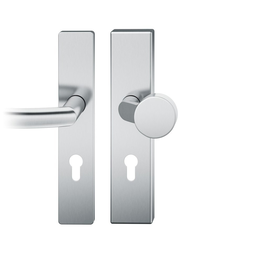 Produktinformationen "FSB für Feuerschutz Vollblatt Sicherheits-Wechselgarnitur 73 7579,Langschild,ES 1,ohne Zylinderabdeckung 72/9,DIN Links-Rechts,edelstahl fein matt,Türstärke53-57,Flachknopf gekröpft/gebogen"