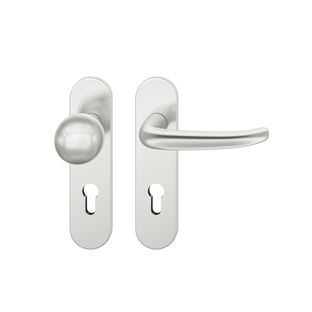 Produktinformationen "FSB für Feuerschutz Wechselgarnitur 76 1023, Kurzschild, oval, Profilzylinder gelocht, Entfernung 72mm, Vierkant 9mm, DIN Rechts, Türstärke 39 - 48mm, mit Stütznocken, naturfarben eloxiert, Ausgleichslager® 3"