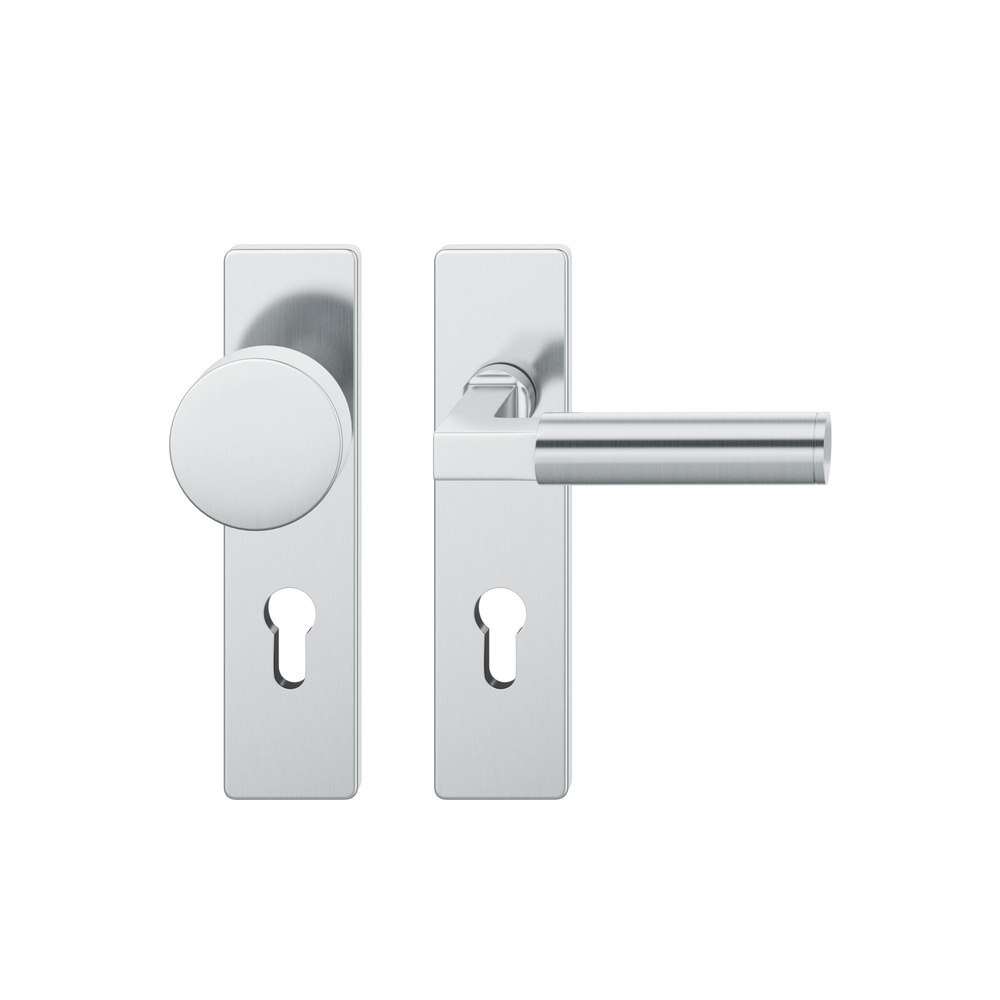 Produktinformationen "FSB für Feuerschutz Wechselgarnitur 76 1102, Kurzschild, eckig, Profilzylinder gelocht, Entfernung 72mm, Vierkant 9mm, DIN Rechts, Türstärke 39 - 48mm, mit Stütznocken, edelstahl fein matt, Ausgleichslager® 3"