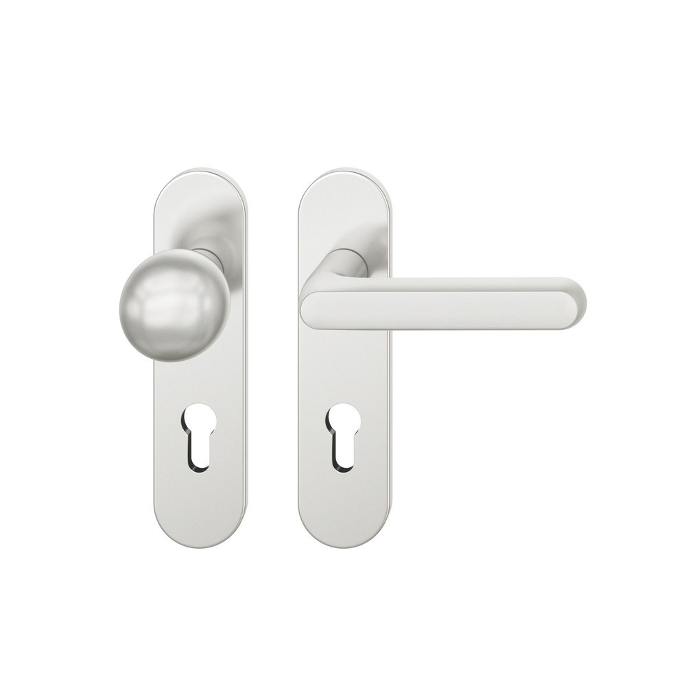 Produktinformationen "FSB für Feuerschutz Wechselgarnitur 76 1246, Kurzschild, oval, Profilzylinder gelocht, Entfernung 72mm, Vierkant 9mm, DIN Links, Türstärke 39 - 48mm, mit Stütznocken, naturfarben eloxiert, Ausgleichslager® 3"