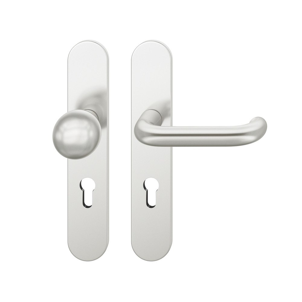 Produktinformationen "FSB für Feuerschutz Wechselgarnitur 79 1146, Langschild, oval, Profilzylinder gelocht, Entfernung 72mm, Vierkant 9mm, DIN Rechts, Türstärke 39 - 48mm, mit Stütznocken, naturfarben eloxiert, Ausgleichslager® 3"