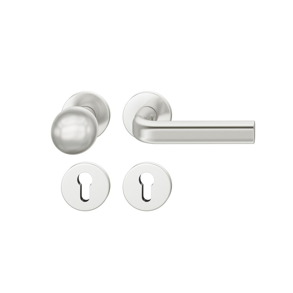 Produktinformationen "FSB für Feuerschutz Wechselgarnitur 76 1242, Ausführung Türgriff (außen) fest, Rosette, rund, Profilzylinder gelocht, Vierkant 9mm, DIN Rechts, Türstärke 39 - 48mm, mit Stütznocken, naturfarben eloxiert Ausgleichslager® 3"