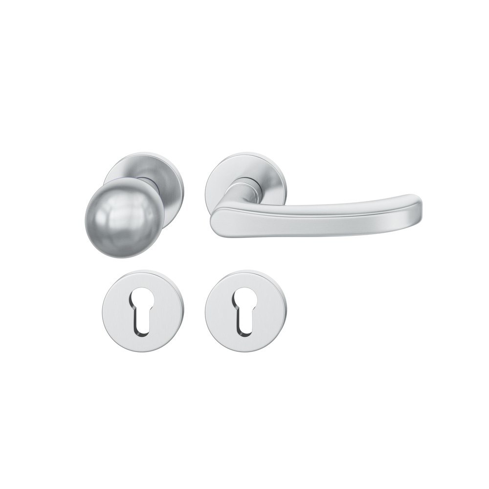 Produktinformationen "FSB für Feuerschutz Wechselgarnitur 79 1043, Ausführung Türgriff (außen) fest, Rosette, rund, Profilzylinder gelocht, Vierkant 9mm, DIN Rechts, Türstärke 39 - 48mm, mit Stütznocken, edelstahl fein matt Ausgleichslager® 3"