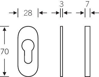FSB Profiltür Schlüsselrosette, Lochung: Profilzylinder gelocht, Befestigungsart: selbstklebend, Modellnummer: 17 1729, Material: edelstahl, Farbton: edelstahl, Oberfläche: fein matt, Form: oval, DIN-Richtung: DIN Links-Rechts, Befestigungstechnik: ohne Stütznocken, Länge: 70 mm, Breite: 28 mm, Stärke Abdeckung: 3 mm, Türart: Außentüren, Rahmentüren, Türwerkstoff: aluminium