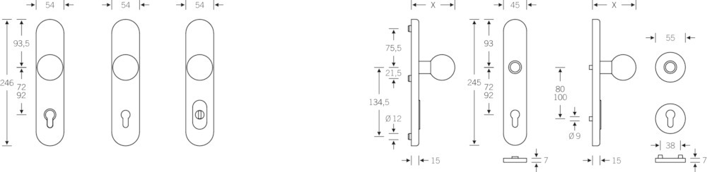 FSB Haustür Schutz-Wechselgarnitur, Abdeckung: Langschild, Modellnummer: 73 7375, Lochung: Profilzylinder gelocht, Entfernung: 92 mm, Vierkant: 10 mm, Vierkant: 10, Material: edelstahl, Farbton: edelstahl, Oberfläche: fein matt, DIN-Richtung: DIN Links-Rechts, Ausführung: mit Zylinderabdeckung, Befestigungsart: verdeckt verschraubt, Befestigungstechnik: mit Stütznocken, Befestigungssystem: Stiftverbindung, Eigenschaft: Knopf fest auf Schild, Schildbreite außen: 54 mm, Schildbreite innen: 45 mm, Schildlänge innen: 245 mm, Schildstärke außen: 15 mm, Schildstärke innen: 7 mm, Knopfform: Kugelform, Knopfhöhe: 65 mm, Knopfdurchmesser: 50 mm, Anschlagrichtung: Drücker rechts/links verwendbar, Drückerbefestigung: Stabil-Wechselstift mit Rolle, Form: oval, Türstärke min.: 67 mm, Türstärke max.: 69 mm, Türart: Außentüren, Türwerkstoff: Holz, stahl, Benutzerklasse: Klasse 4, Widerstandsklasse: ES 1 (SK2), Norm: DIN 18257, DIN EN 1906