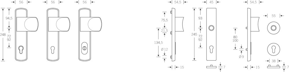 FSB Wohnungseingangstür Schutz-Wechselgarnitur, Abdeckung: Langschild, Modellnummer: 73 7385, Lochung: Profilzylinder gelocht, Entfernung: 72 mm, Vierkant: 8, Vierkant: 8 mm, Material: aluminium, Farbton: naturfarbig, Oberfläche: eloxiert, DIN-Richtung: DIN Links-Rechts, Befestigungsart: verdeckt verschraubt, Befestigungstechnik: mit Stütznocken, Befestigungssystem: Stiftverbindung, Eigenschaft: Griffplatte fest auf Schild, Schildbreite außen: 56 mm, Schildbreite innen: 45 mm, Schildlänge innen: 245 mm, Schildstärke außen: 11 mm, Schildstärke innen: 7 mm, Knopfform: Design, Anschlagrichtung: Drücker rechts/links verwendbar, Drückerbefestigung: Stabil-Wechselstift mit Rolle, Form: Design, Türstärke min.: 40 mm, Türstärke max.: 42 mm, Türart: Außentüren, Türwerkstoff: Holz, stahl, Benutzerklasse: Klasse 4, Widerstandsklasse: ES 1 (SK2), Norm: DIN 18257, DIN EN 1906