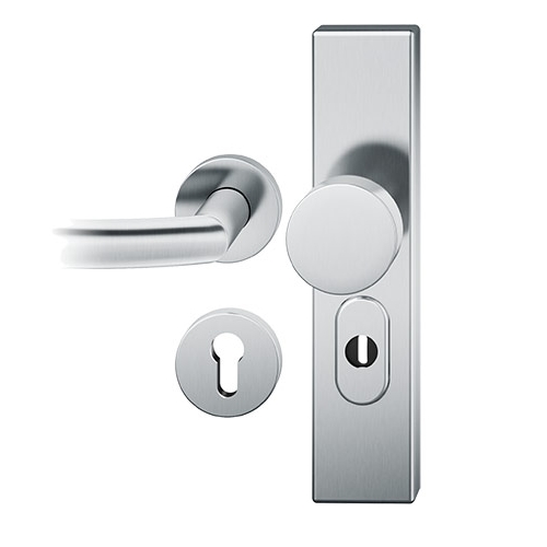 Der FSB 7376 Türgriff ist als Schutzgarnitur konzipiert. Die Schutzgarnitur ist wahlweise in Edelstahl, Aluminium, oder Bronze erhältlich. Dank des Zylinderziehschutzes eignet sich der FSB 7376 besonders zum Einsatz an Haus- und Wohnungseingangstüren und entspricht der Schutzklasse 2. Der Zylinderziehschutz ist für Zylinderüberstände von 8-15 mm ausgelegt.