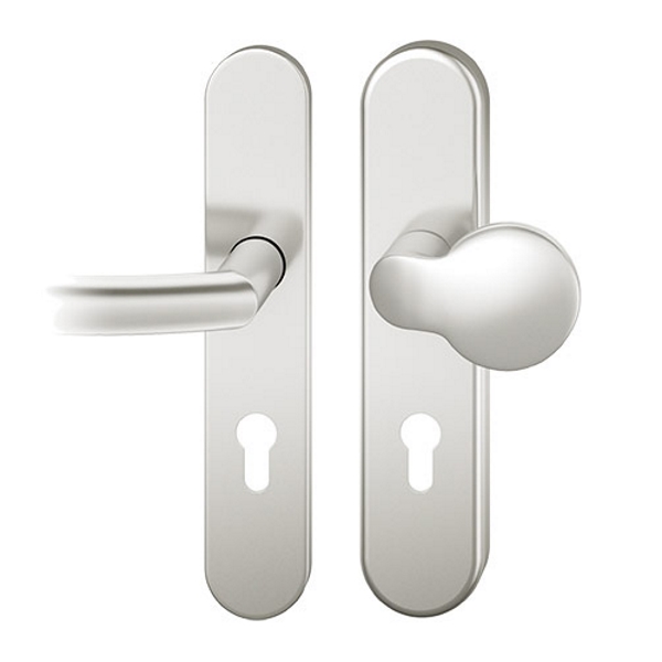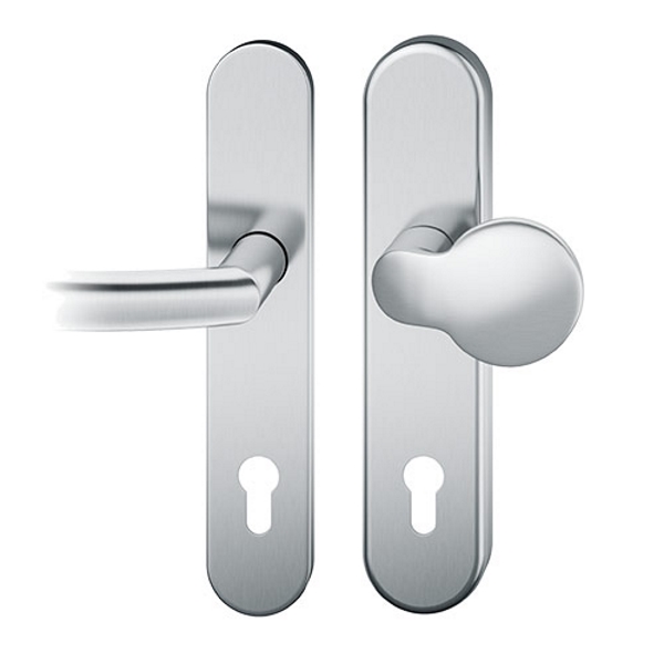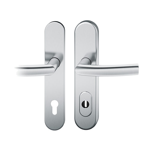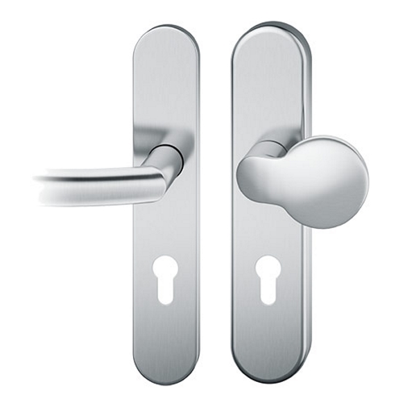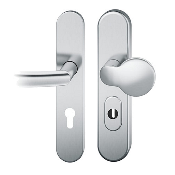 Der FSB 7384 Türgriff ist als Schutzgarnitur konzipiert. Die Schutzgarnitur ist wahlweise in Edelstahl oder Aluminium erhältlich. Dank des Zylinderziehschutzes eignet sich der FSB 7384 besonders zum Einsatz an Wohnungseingangs- und Hauseingangstüren und entspricht der Schutzklasse 2. Der Zylinderziehschutz ist für Zylinderüberstände von 8-15 mm ausgelegt.