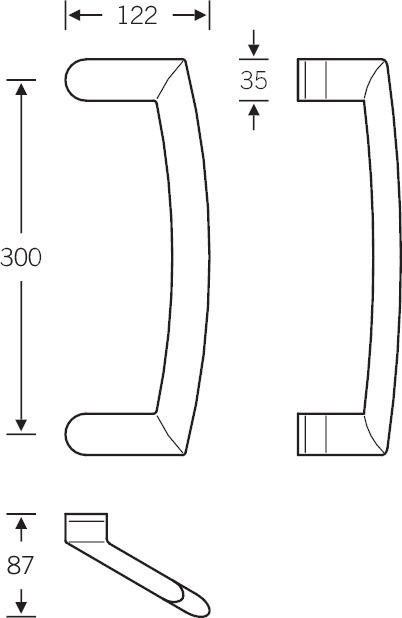 FSB Haustür Stoßgriff, Ausführung: gekröpft, halbgebogen, Modellnummer: 66 6536, Befestigungsabstand: 300 mm, Grifflänge: 335 mm, Griffbreite: 122 mm, Grifftiefe: 87 mm, Material: edelstahl, Farbton: edelstahl, Oberfläche: fein matt, Befestigungsart: verdeckt verschraubt, DIN-Richtung: DIN Links-Rechts, Form: oval, Türwerkstoff: aluminium, Holz, Kunststoff, stahl