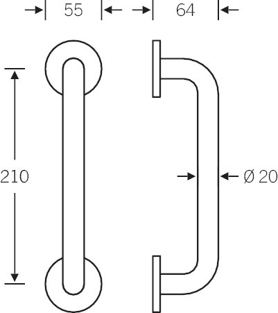 FSB Haustür Stoßgriff, Ausführung: gebogen, Modellnummer: 66 6628, Befestigungsabstand: 210 mm, Griffdicke: 20 mm, Grifflänge: 230 mm, Grifftiefe: 64 mm, Material: edelstahl, Farbton: edelstahl, Oberfläche: fein matt, Abdeckung: mit Rosette, Befestigungsart: verdeckt verschraubt, DIN-Richtung: DIN Links-Rechts, Form: rund, Türwerkstoff: aluminium, Holz, Kunststoff, stahl