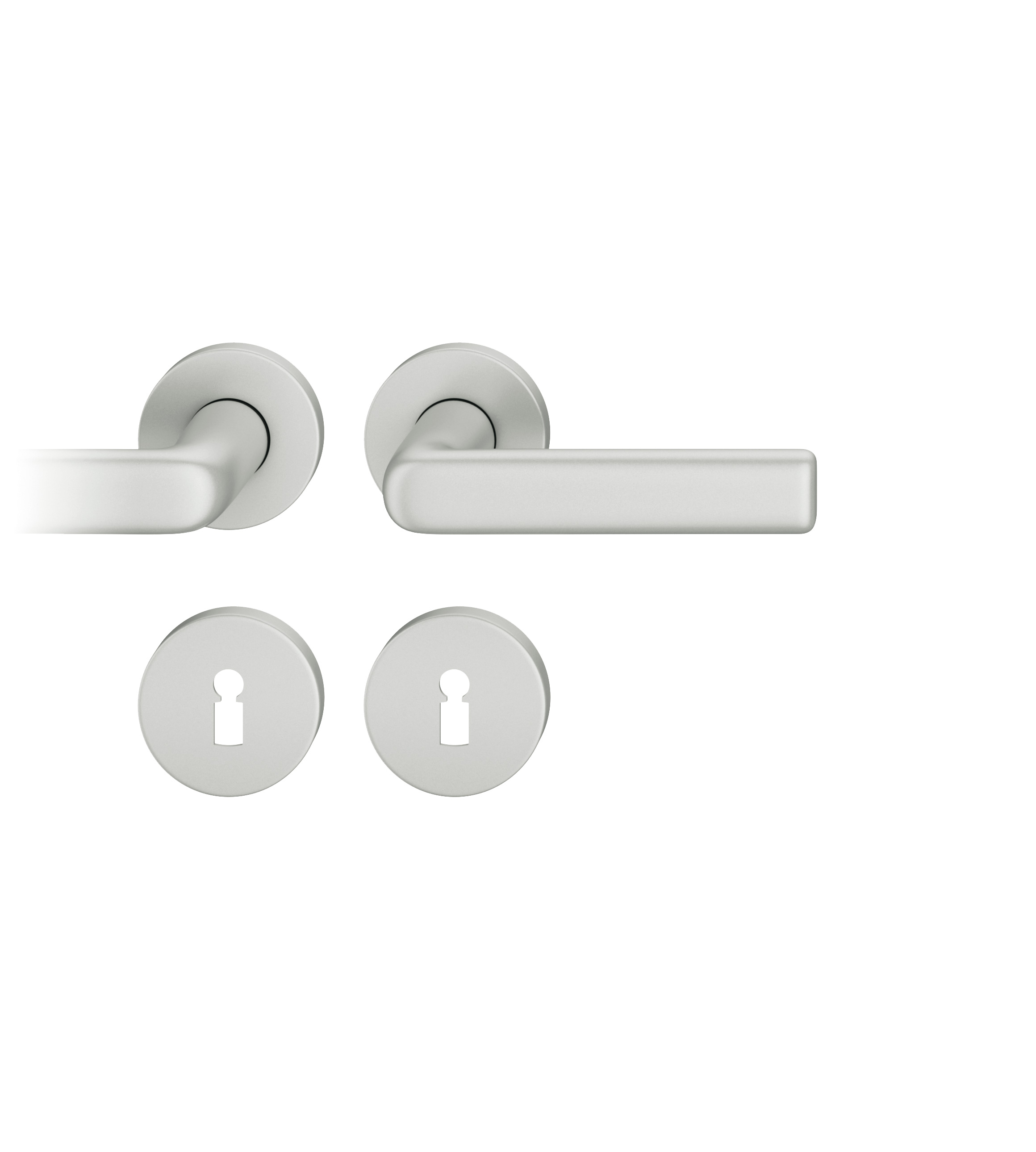 Die Tür-Komplettgarnitur 1012 von FSB ist einem Design von Hans Poelzig aus den 1920er Jahren nachempfunden. Der Türdrückerhals ist rund und in eine hochovale Handhabe übergehend, ds Handhaben-Ende ist dabei großzügig abgerundet. Die Länge des Griffes beträgt ca. 125 mm. Die Garnitur in Aluminium-Ausführung kann wahlweise als Wechsel-, WC- und Drückergarnitur bestellt werden.