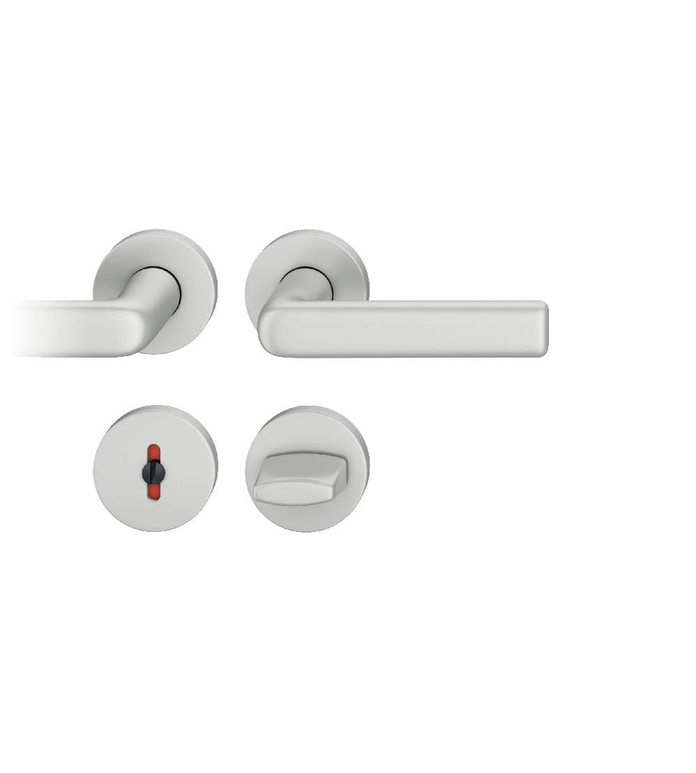 Die Tür-Komplettgarnitur 1012 von FSB ist einem Design von Hans Poelzig aus den 1920er Jahren nachempfunden. Der Türdrückerhals ist rund und in eine hochovale Handhabe übergehend, ds Handhaben-Ende ist dabei großzügig abgerundet. Die Länge des Griffes beträgt ca. 125 mm. Die Garnitur in Aluminium-Ausführung kann wahlweise als Wechsel-, WC- und Drückergarnitur bestellt werden.