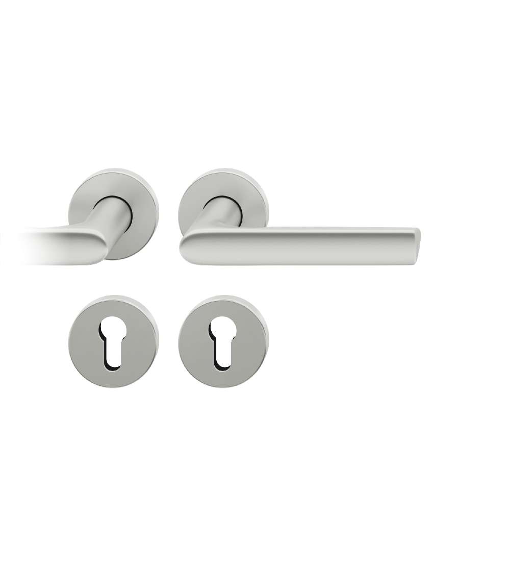 Die Tür-Komplettgarnitur FSB 1093 verbindet auf innovative Art und Weise geometrische und ergonomische Elemente miteinander. Das Design stammt von Helmut Jahn und Yorgo Lykouria. Die Grifflänge beträgt ca. 137 mm. Das Modell ist als Drücker-, Wechsel- und WC/Bad-Garnitur erhältlich.