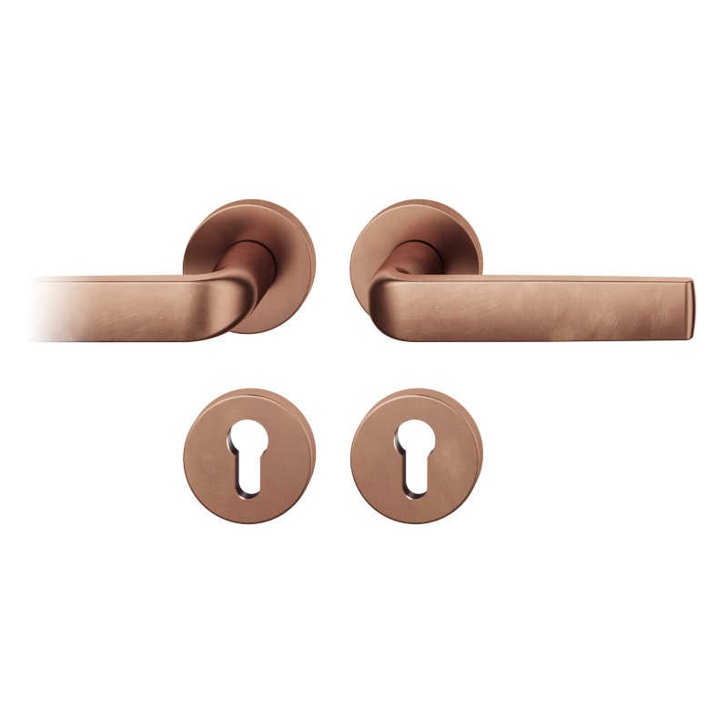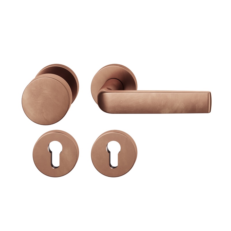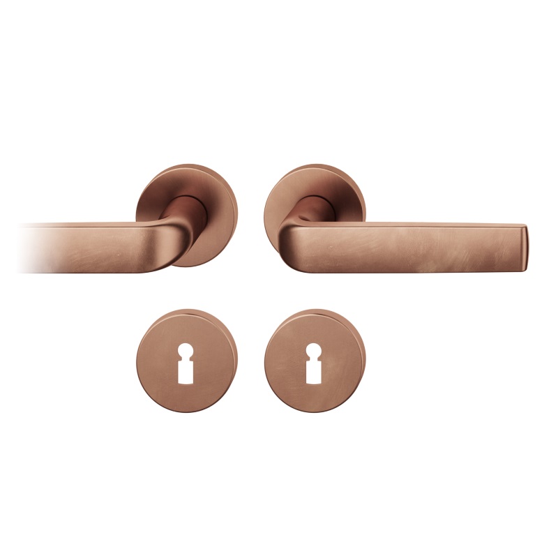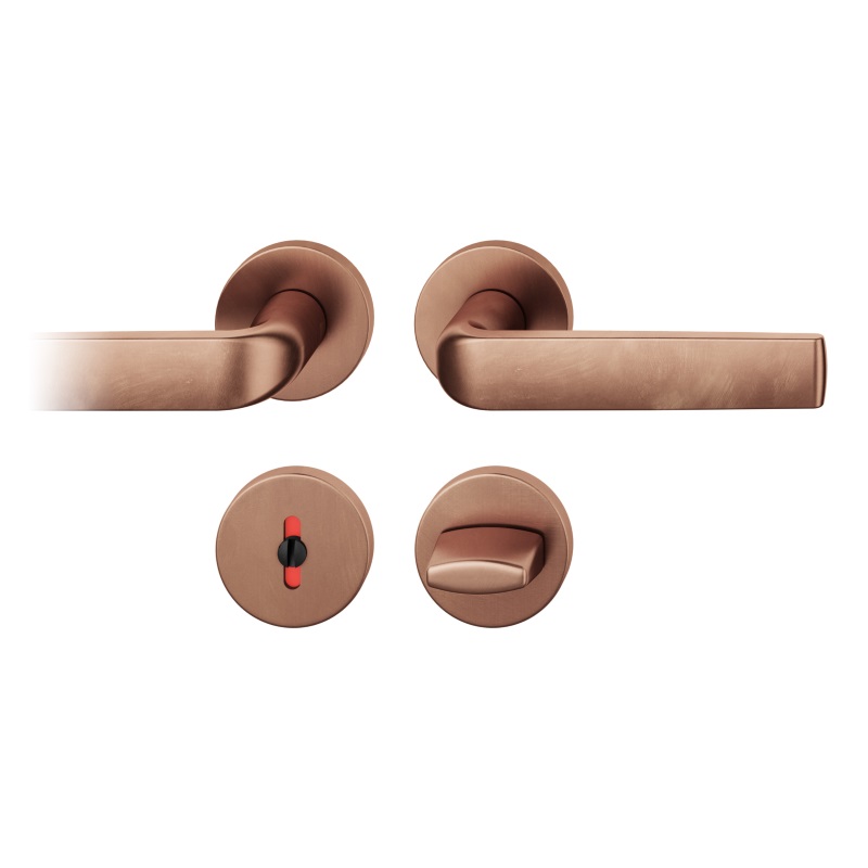 Die Garnitur ist wahlweise als WC/Bad-Garnitur oder als Drücker- bzw. Wechselgarnitur erhältlich. Der Griff wurde in den Werkstoffen Aluminium, Edelstahl und Bronze umgesetzt. Seit dem 11.04.2023 wird dieser Griff auch in der neuen Farbserie "Les Couleurs Le Corbusier" gefertigt. Sie erkennen diese Farben am "LC" in der Farbcodierung auf unserer Homepage.