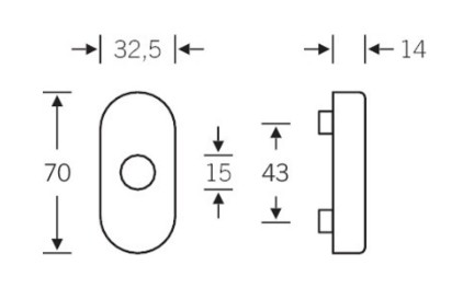 FSB Fenster Verdeckrosette, Form Rosette: oval, Ausführung: ohne Abdeckung, Modellnummer: 17 1759, Material: edelstahl, Farbton: edelstahl, Oberfläche: fein matt, Befestigungstechnik: mit Stütznocken, Nockendurchmesser: 10 mm, Befestigungsart: verdeckt verschraubt, Befestigungsabstand: 43 mm, DIN-Richtung: DIN Links-Rechts, Montage: vertikal, horizontal, Sockelhöhe: 70 mm, Sockelstärke: 14 mm, Lochdurchmesser: 15 mm