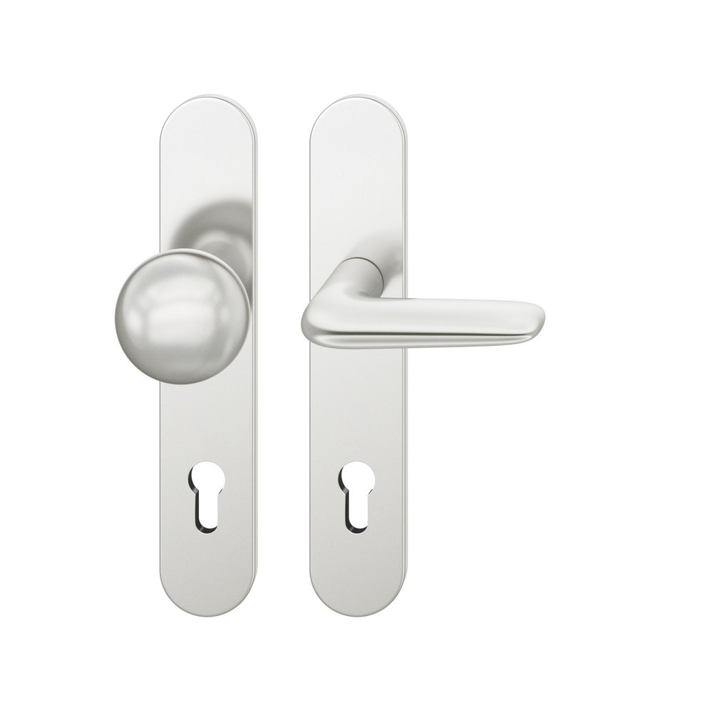 Produktinformationen "FSB Wechselgarnitur 12 1291, Langschild oval, Profilzylinder gelocht, Entfernung 92mm, Vierkant 8, DIN Links-Rechts, Türstärke 39 - 58mm, mit Stütznocken, naturfarben eloxiert, Adapter-Standardlager"