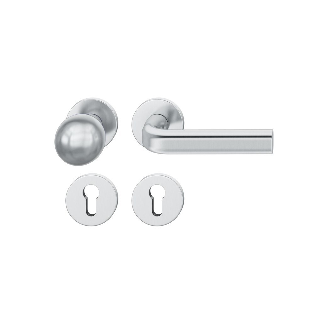 Produktinformationen "FSB Wechselgarnitur 72 1242, Ausführung Türgriff (außen) fest, Rosette, rund, Profilzylinder gelocht, Vierkant 8mm, DIN Links, Türstärke 39 - 48mm, mit Stütznocken, edelstahl fein matt Ausgleichslager® 3"