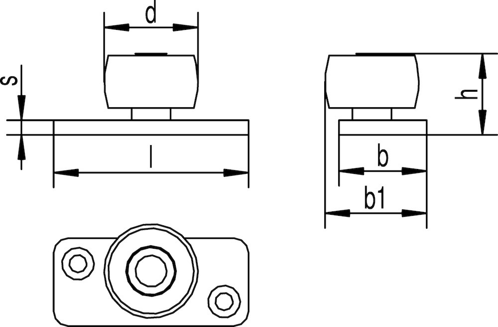HELM Schiebetor Gleitrolle, Ausführung: auf Bodenplatte, Modellnummer: 459 PL, Rollendurchmesser: 39 mm, Material Rolle: Kunststoff, Material Platte: stahl, Oberfläche Platte: verzinkt, Plattenlänge: 80 mm, Plattenbreite: 36 mm, Plattenstärke: 6 mm, Gesamthöhe: 33 mm