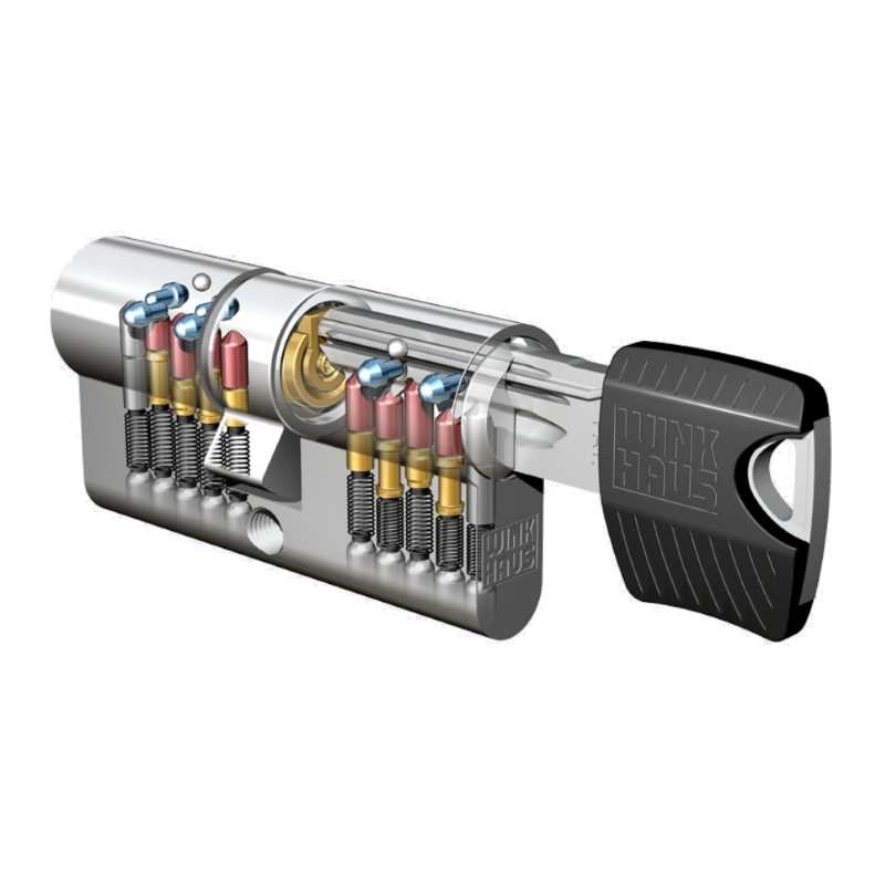 - Aufbohrschutz durch gehärtete, rostfreie Stahlstift und Kernstifte aus gehärtetem Stahl