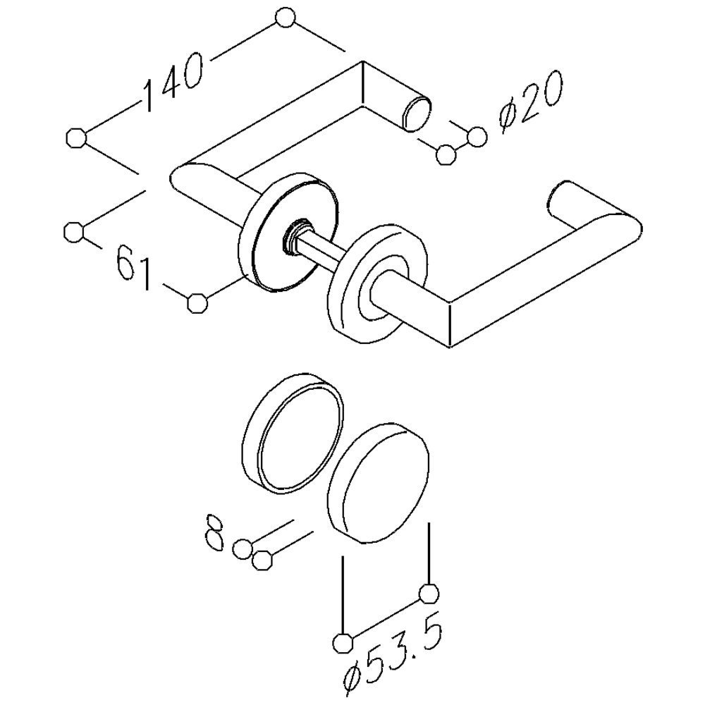 HELO Objekttür Drückergarnitur, Abdeckung: mit Rosetten, Modell: EST.ZG, Modellnummer: 11, Lochung: Blind, Vierkant: 8, Material: edelstahl, Farbton: edelstahl, Oberfläche: fein matt, DIN-Richtung: DIN Links-Rechts, Lagerung: Gleitlager, wartungsfrei, festdrehbar, Befestigungstechnik: mit Stütznocken, Befestigungsart: verdeckt verschraubt, Befestigungssystem: Stiftverbindung, Material Unterkonstruktion: Kunststoff-Stahlverbundbau, Anschlagrichtung: Drücker rechts/links verwendbar, Drückerbefestigung: Vierkantstift, Drückerform: Gehrung, U-Form, Drückerdurchmesser: 20 mm, Drückerlänge: 140 mm, Drückerhöhe: 53 mm, Form: rund, Stärke Abdeckung: 8 mm, Türstärke min.: 35 mm, Türstärke max.: 44 mm, Türart: Innentüren, Türwerkstoff: Holz, stahl, Benutzerklasse: Klasse 4, Norm: DIN EN 1906, DIN 18255