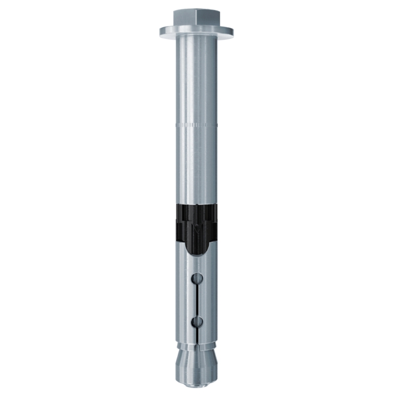Der Ankerbolzen FH II S mit Sechskantkopf ist ein Hülsenanker aus galvanisch verzinktem Stahl. Der Anker wird in der zeitsparenden Durchsteckmontage gesetzt. Beim Anziehen des Ankers wird der Konus in die Spreizhülse gezogen und verspannt diese gegen die Bohrlochwand. Der schwarze Kunststoffring verhindert, dass sich der Anker mitdreht, und nimmt den Anzugsschlupf auf. Das Anbauteil wird dadurch an den Verankerungsgrund gezogen. Der fischer Hochleistungsanker FH II S mit Sechskantkopf ist bestens geeignet, um in gerissenem und ungerissenem Beton Konsolen, Stahlkonstruktionen und Kabeltrassen zu befestigen.