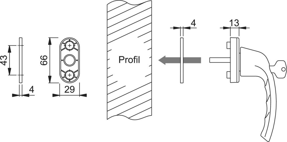 Produktinformationen "HOPPE DK-Distanzplatte, für Fenstergriff, verdeckt verschraubt, Kunststoff, signalweiß"