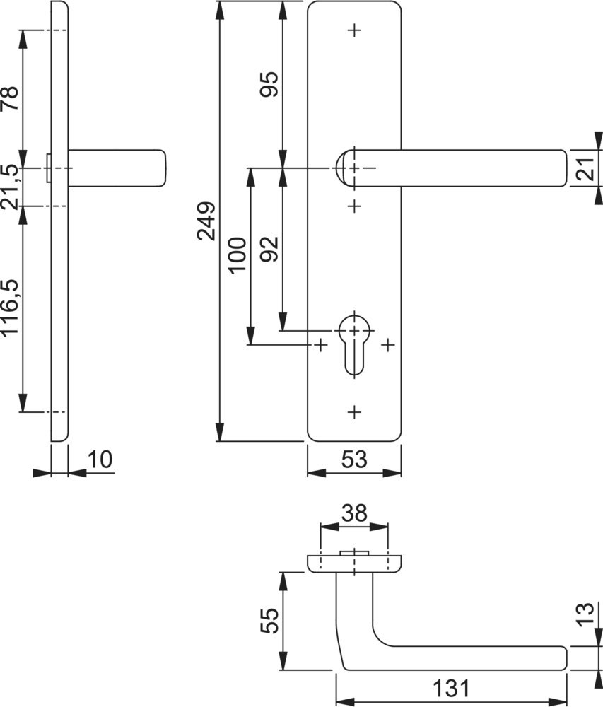Produktinformationen "HOPPE Halbgarnitur Dallas E1643F/2210, LS,PZ92/10,F69,o. No."