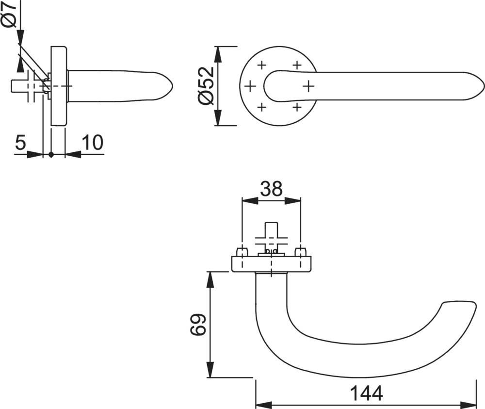 Höhe Drückerrosette (innen): 10.00 MMT
