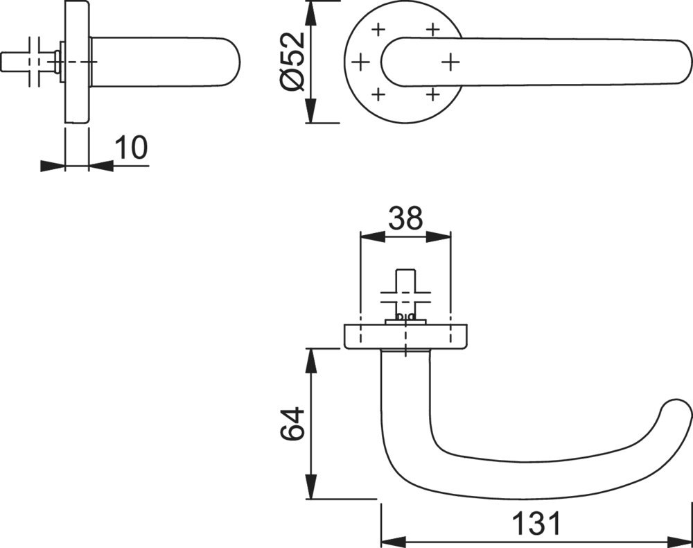 Höhe Drückerrosette (innen): 10.00 MMT