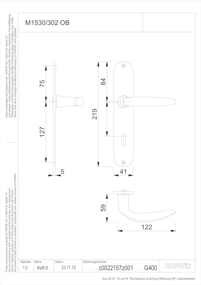 Produktinformationen "HOPPE Drückergarnitur Atlanta M1530/302, LS,BB72/8,F49-R,TS 37-47,o. No."