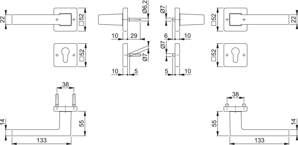 | Länge Drückerrosette (außen): | 52.00 MMT |