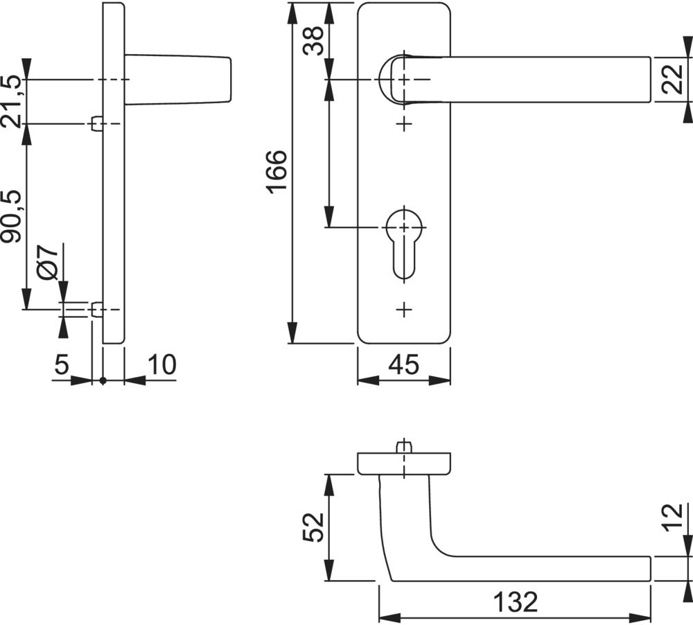 Drückergarnitur Dallas 1643/202KH; Produkttyp: Drückergarnitur; Produkttyp (Hersteller): Drückergarnitur; Ausführung: Kurzschild; Befestigungsart: verdeckt verschraubt; Befestigungstechnik: mit Stütznocken; Form: eckig; Vierkant: 8 mm; Material: Aluminium; Material Unterkonstruktion: Stahl; Form Türgriff (innen): L-Form; Form Türgriff (außen): L-Form; Breite Türgriff (innen): 22 mm; Breite Türgriff (außen): 22 mm; Länge Türgriff (innen): 132 mm; Länge Türgriff (außen): 132 mm; Höhe Türgriff (innen): 52 mm; Höhe Türgriff (außen): 52 mm; Schildbreite außen: 45 mm; Schildbreite innen: 45 mm; Schildlänge außen: 166 mm; Schildlänge innen: 166 mm; Schildstärke außen: 10 mm; Schildstärke innen: 10 mm; Lagerung: mit Rückholfeder,festdrehbar,wartungsfreies Gleitlager; Einsatzbereich: Objekttür; Türart: Vollblatt; Türwerkstoff: Stahl,Holz; Norm: DIN EN 1906; Lochung: Profilzylinder gelocht; Entfernung: 72 mm; DIN-Richtung: DIN Links-Rechts; Farbe: silber; Farbton: naturfarben; Oberfläche: eloxiert; Ausführung Vierkant: Profilstift; Türstärke min.: 40 mm; Türstärke max.: 45 mm; EN 1906 - Gebrauchskategorie: Klasse 4; EN 1906 - Korrosionsbeständigkeit: Klasse 5; Klassifizierungsschlüssel EN 1906: 47*-0150A