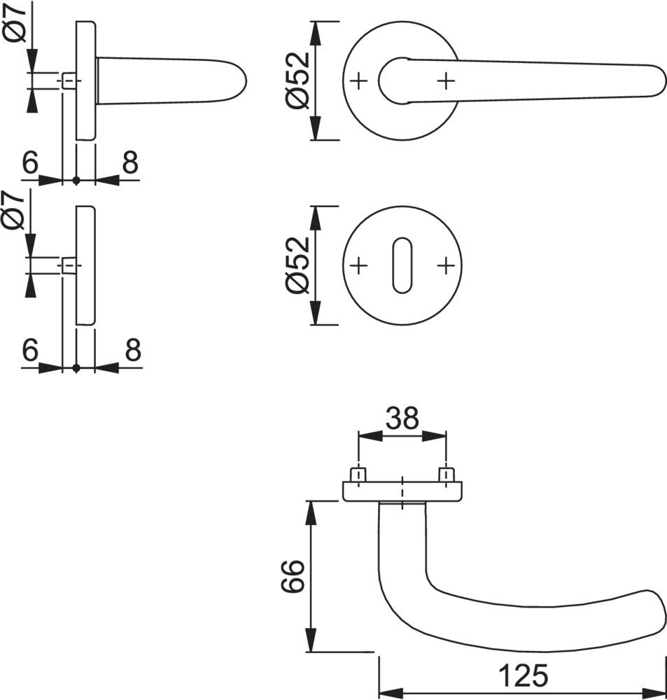 | Höhe Drückerrosette (innen): | 8.00 MMT |