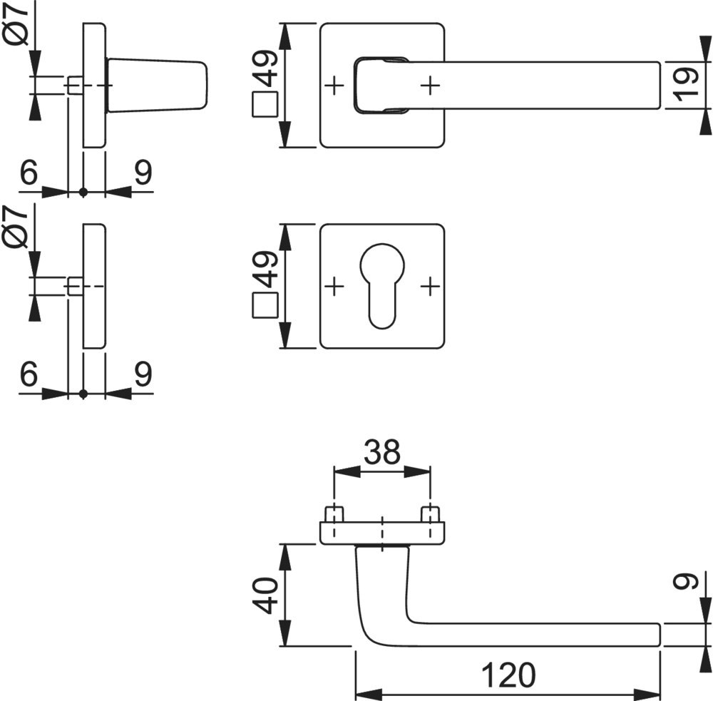 | Breite Drückerrosette (außen): | 49.00 MMT |