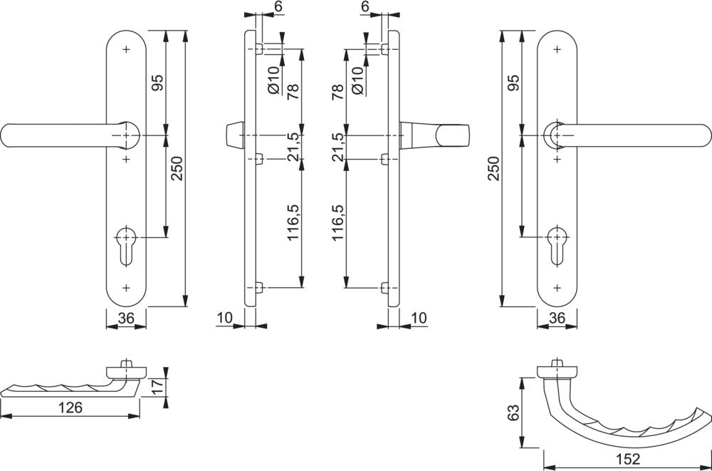 Drückergarnitur Luxembourg 099KH/3357N/1500; Produkttyp: Drückergarnitur; Produkttyp (Hersteller): Drückergarnitur; Ausführung: Langschild; Befestigungsart: verdeckt verschraubt; Befestigungstechnik: mit Stütznocken; Form: oval; Vierkant: 8 mm; Material: Aluminium; Material Unterkonstruktion: Zamak; Form Türgriff (innen): gebogen; Form Türgriff (außen): L-Form; Länge Türgriff (innen): 152 mm; Länge Türgriff (außen): 126 mm; Höhe Türgriff (innen): 63 mm; Höhe Türgriff (außen): 17 mm; Schildlänge außen: 250 mm; Schildlänge innen: 250 mm; Schildstärke außen: 10 mm; Schildstärke innen: 10 mm; Lagerung: wartungsfreies Gleitlager,festdrehbar,mit Rückholfeder; Einsatzbereich: Haustür; Türart: Rohrrahmen; Türwerkstoff: Kunststoff,Aluminium; Lochung: Profilzylinder gelocht; Entfernung: 92 mm; DIN-Richtung: DIN Links-Rechts; Farbe: silber; Farbton: naturfarben; Oberfläche: eloxiert; Ausführung Vierkant: Vierkantstift; Türstärke min.: 67 mm; Türstärke max.: 72 mm