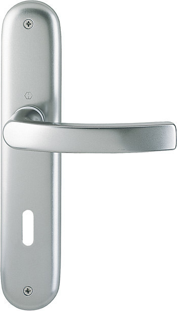 Drückergarnitur Luxembourg 199/273P; Produkttyp: Drückergarnitur; Produkttyp (Hersteller): Drückergarnitur; Ausführung: Langschild; Befestigungsart: sichtbar verschraubt; Befestigungstechnik: ohne Stütznocken; Form: oval; Vierkant: 8 mm; Material: Aluminium; Form Türgriff (innen): gebogen; Form Türgriff (außen): gebogen; Länge Türgriff (innen): 132 mm; Länge Türgriff (außen): 132 mm; Höhe Türgriff (innen): 58 mm; Höhe Türgriff (außen): 58 mm; Schildbreite außen: 46 mm; Schildbreite innen: 46 mm; Schildlänge außen: 240 mm; Schildlänge innen: 240 mm; Schildstärke außen: 9 mm; Schildstärke innen: 9 mm; Lagerung: wartungsfreies Gleitlager,mit Rückholfeder; Einsatzbereich: Objekttür; Türart: Vollblatt; Türwerkstoff: Holz,Stahl; Norm: DIN EN 1906; Lochung: Buntbart gelocht; Entfernung: 72 mm; DIN-Richtung: DIN Links-Rechts; Farbe: grau; Farbton: stahlfarbig; Oberfläche: eloxiert; Ausführung Vierkant: Vierkantstift; Türstärke min.: 37 mm; Türstärke max.: 47 mm; EN 1906 - Gebrauchskategorie: Klasse 3; EN 1906 - Korrosionsbeständigkeit: Klasse 4; Klassifizierungsschlüssel EN 1906: 37-0140A