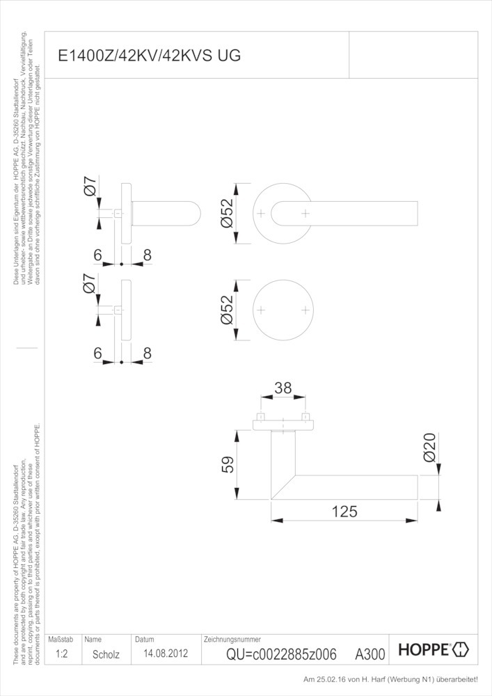 | Anschlagrichtung: | Drücker rechts/links verwendbar |