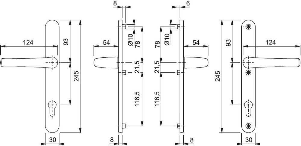 HOPPE®, Profiltür-Drückergarnitur, Abdeckung: Schmalschild, Lochung: Profilzylinder gelocht, Entfernung: 92mm, Vierkant: 8mm, Material: Aluminium, Farbton: stahlfarbig, Oberfläche: eloxiert, Modell: Tôkyô, Modellnummer: 1710RH/3346, DIN-Richtung: DIN Links-Rechts, Lagerung: Gleitlager, wartungsfrei, festdrehbar, Befestigungstechnik: mit Stütznocken, Befestigungsart: innen sichtbar verschraubt, Befestigungssystem: Stiftverbindung, Material Unterkonstruktion: Edelstahl, Länge: 245mm, Breite: 30mm, Schildstärke: 8mm, Anschlagrichtung: Drücker rechts/links verwendbar, Drückerbefestigung: Vollstift, Form: oval, Drückerform: gebogen,Drückerlänge : 124mm,Drückerhöhe : 55mm, Türstärke min.: 57mm, Türstärke max.: 62mm, Türart: Außentüren, Rahmentüren, Türwerkstoff: Aluminium, Kunststoff, Norm: DIN EN 1906