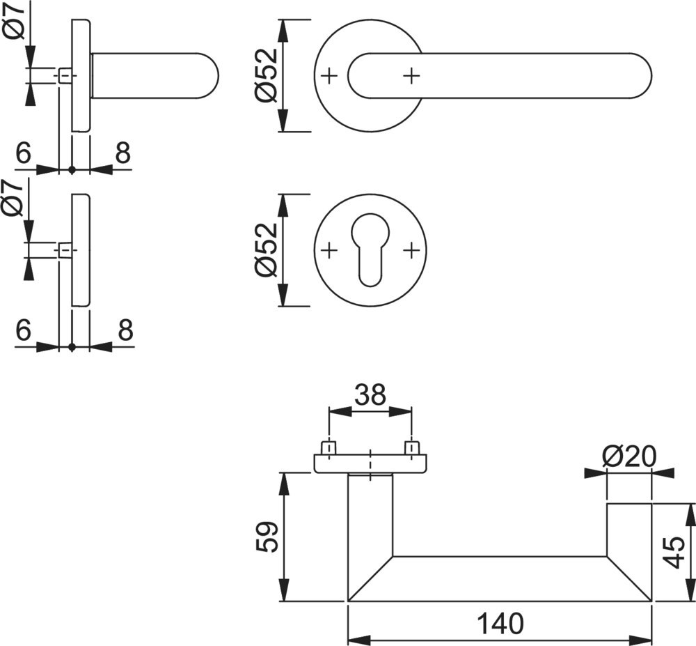 Höhe Schlüsselrosette (außen): 8.00 MMT