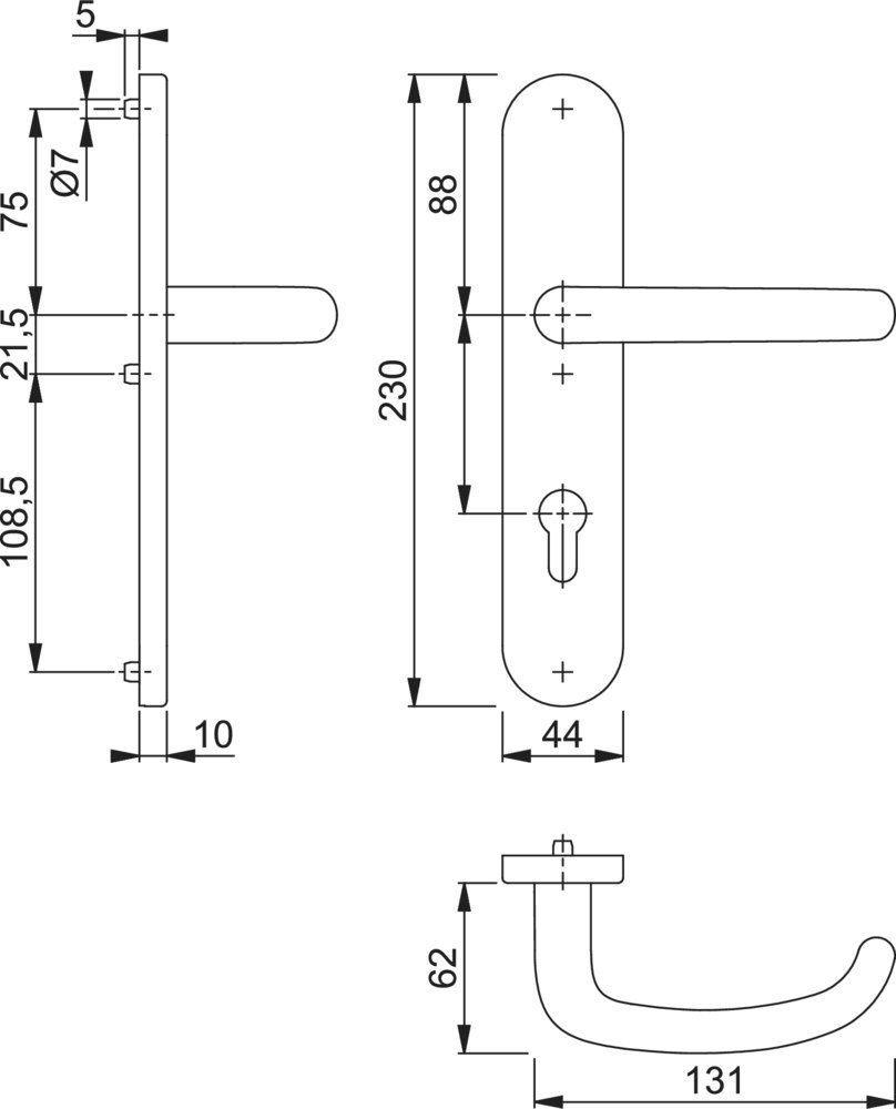 Drückergarnitur San Francisco E1301/353H; Produkttyp: Drückergarnitur; Produkttyp (Hersteller): Drückergarnitur; Ausführung: Langschild; Befestigungsart: verdeckt verschraubt; Befestigungstechnik: mit Stütznocken; Form: oval; Vierkant: 8 mm; Material: Edelstahl; Material Unterkonstruktion: Stahl; Form Türgriff (innen): gebogen; Form Türgriff (außen): gebogen; Länge Türgriff (innen): 131 mm; Länge Türgriff (außen): 131 mm; Höhe Türgriff (innen): 62 mm; Höhe Türgriff (außen): 62 mm; Schildbreite außen: 44 mm; Schildbreite innen: 44 mm; Schildlänge außen: 230 mm; Schildlänge innen: 230 mm; Schildstärke außen: 10 mm; Schildstärke innen: 10 mm; Lagerung: mit Rückholfeder,wartungsfreies Gleitlager,festdrehbar; Einsatzbereich: Objekttür; Türart: Vollblatt; Türwerkstoff: Stahl,Holz; Norm: DIN EN 1906; Lochung: Profilzylinder gelocht; Entfernung: 72 mm; DIN-Richtung: DIN Links-Rechts; Farbe: grau; Farbton: edelstahl matt; Ausführung Vierkant: Profilstift; Türstärke min.: 40 mm; Türstärke max.: 45 mm; EN 1906 - Gebrauchskategorie: Klasse 4; EN 1906 - Korrosionsbeständigkeit: Klasse 5; Klassifizierungsschlüssel EN 1906: 47*-0150A