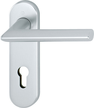 Drückergarnitur Stockholm 1140/353K; Produkttyp: Drückergarnitur; Produkttyp (Hersteller): Drückergarnitur; Ausführung: Kurzschild; Befestigungsart: verdeckt verschraubt; Befestigungstechnik: mit Stütznocken; Form: oval; Vierkant: 8 mm; Material: Aluminium; Material Unterkonstruktion: Stahl; Form Türgriff (innen): Gehrung; Form Türgriff (außen): Gehrung; Länge Türgriff (innen): 132 mm; Länge Türgriff (außen): 132 mm; Höhe Türgriff (innen): 61 mm; Höhe Türgriff (außen): 61 mm; Schildbreite außen: 45 mm; Schildbreite innen: 45 mm; Schildlänge außen: 166 mm; Schildlänge innen: 166 mm; Schildstärke außen: 9 mm; Schildstärke innen: 9 mm; Lagerung: wartungsfreies Gleitlager; Einsatzbereich: Objekttür; Türart: Vollblatt; Türwerkstoff: Holz,Stahl; Norm: DIN EN 1906; Lochung: Profilzylinder gelocht; Entfernung: 72 mm; DIN-Richtung: DIN Links-Rechts; Farbe: silber; Farbton: naturfarben; Oberfläche: eloxiert; Ausführung Vierkant: Vierkantstift; Türstärke min.: 35 mm; Türstärke max.: 45 mm; EN 1906 - Gebrauchskategorie: Klasse 3; EN 1906 - Korrosionsbeständigkeit: Klasse 4; Klassifizierungsschlüssel EN 1906: 37-0140U