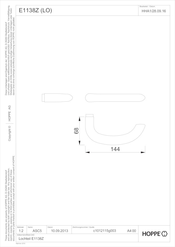 | Produkttyp: | Drückerlochteil |