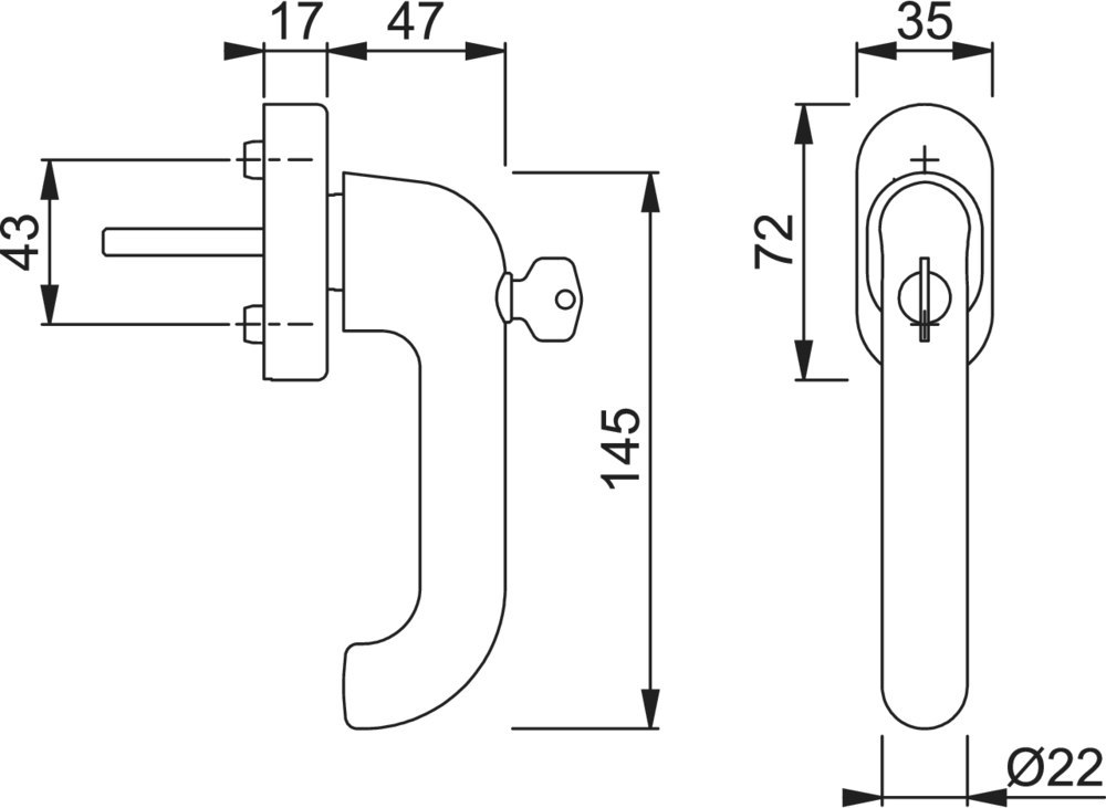 Produktinformationen "HOPPE Fenstergriff Paris E038S/UD9056, abschließbar, oval,7/32-42,TBT4,F69"